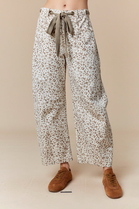 Lyla Waist Tie Leopard Print Denim Barrel Pants