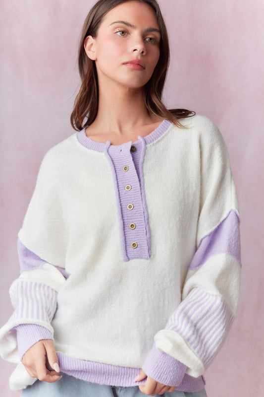 Olivia Oatmeal Satin Ribbon V-Neck Sweater