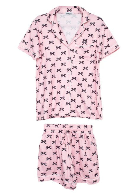 Penelope Pink and Black Mini Coquette Bows Pajama Set