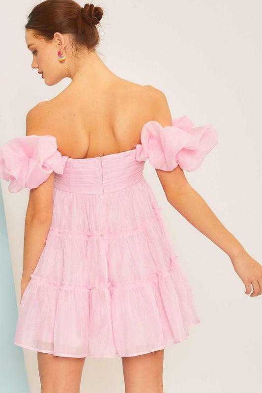 Pink Off The Shoulder Ruffle Babydoll Dress
