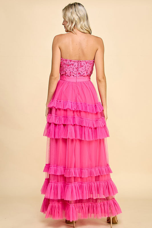 Pink Lace and Tulle Maxi Dress